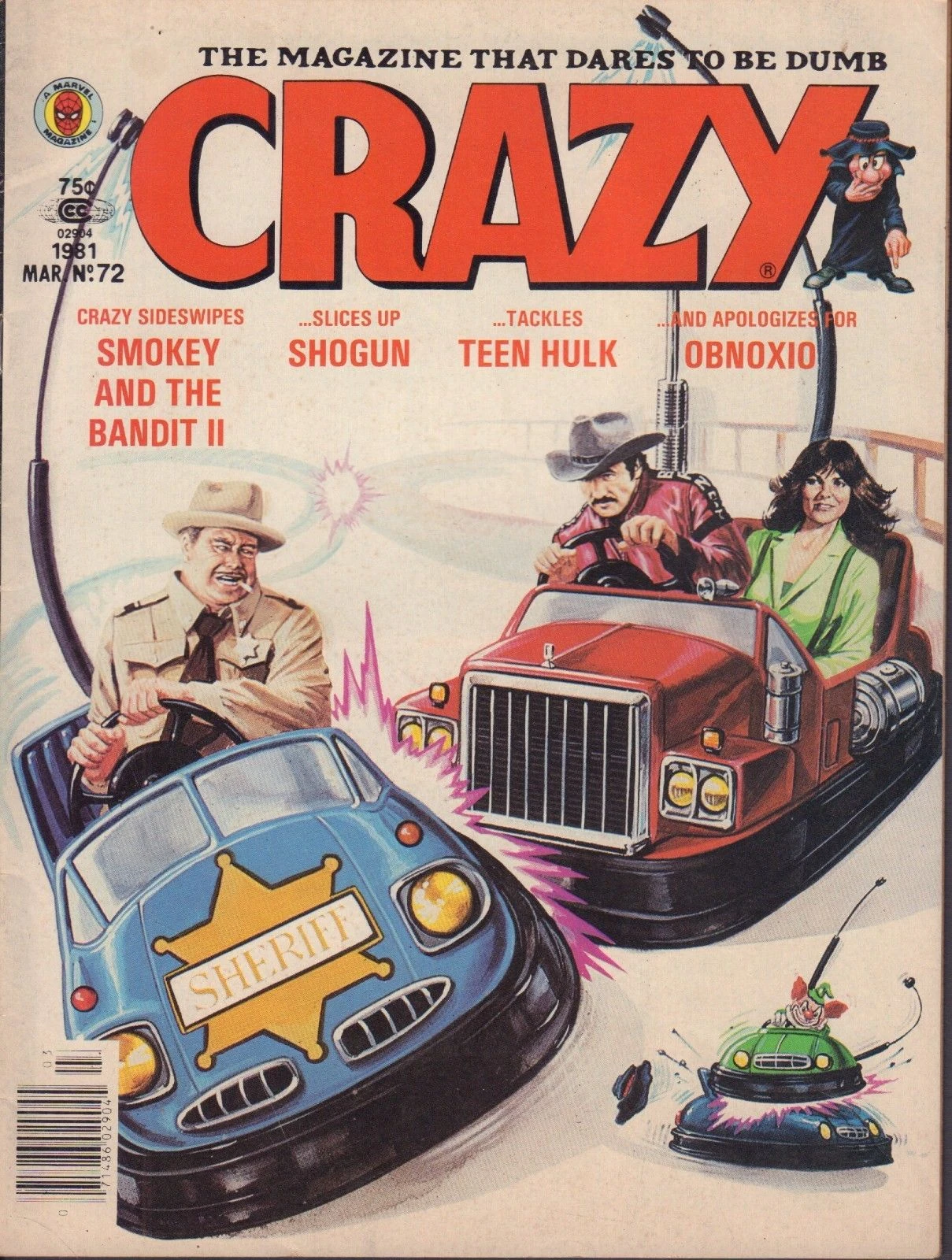 Its March 1981 issue spoofed the 1980 film Smokey and the Bandit II. The cover had caricatures of Bandit, Frog, and Smokey driving bumper car versions of their truck and police car.
